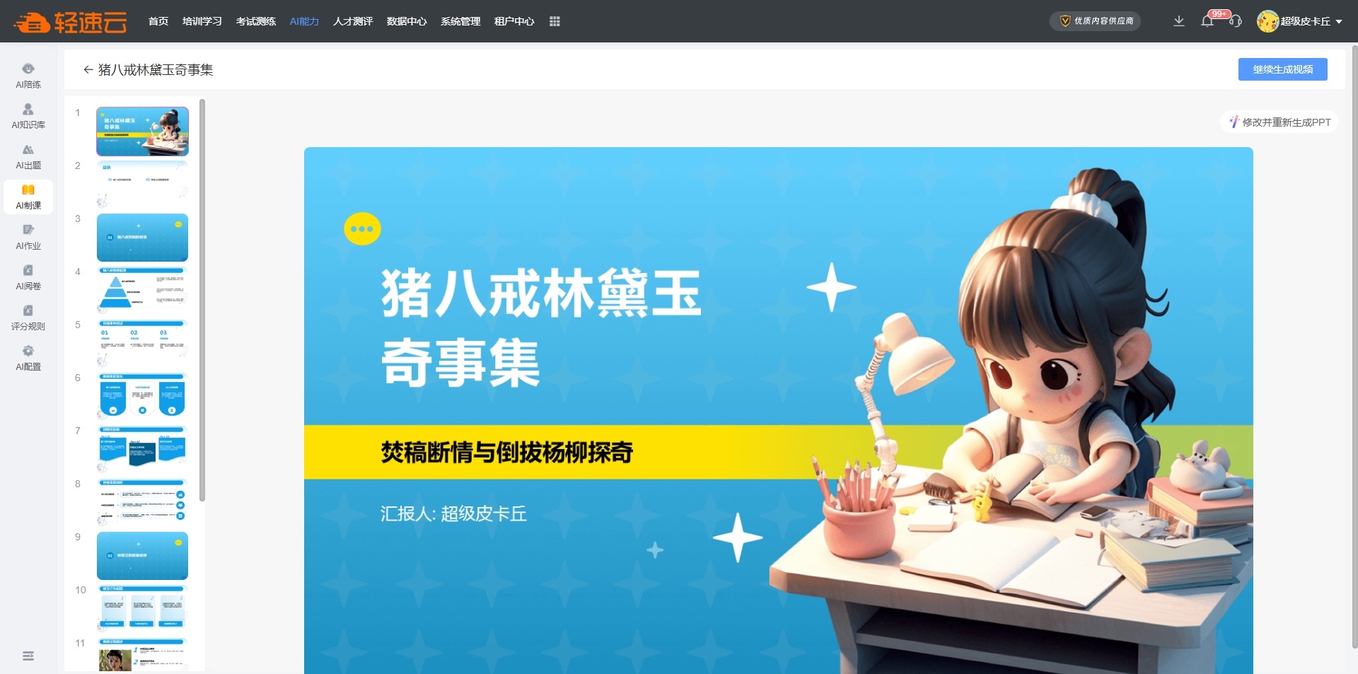 目前AI能够根据用户要求生成ppt或视频,该文件能够被当作一个普通知识,用于系统中的学员学习。