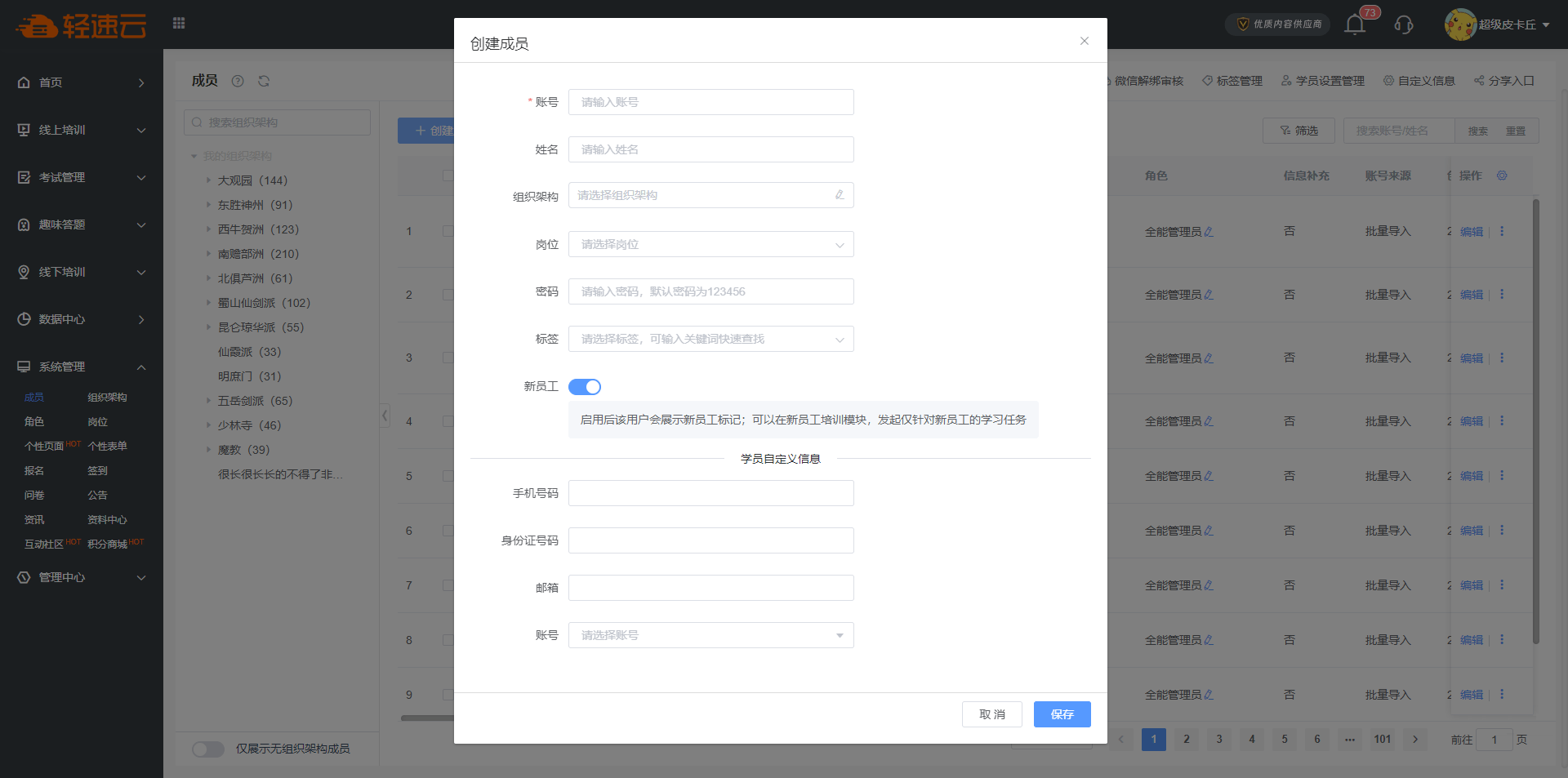 通过 学员设置管理 ,能够将新注册的成员默认设置为新员工。