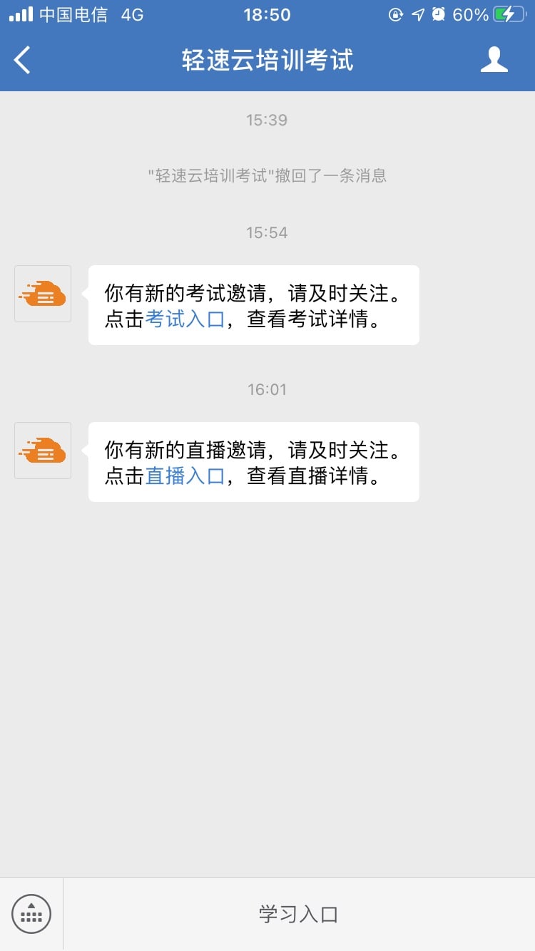 飞书成员可能通过飞书收到 考试 、 课程 或 直播 的消息通知邀请,通过邀请入口也可直接免登录进入到对应的使用页面。