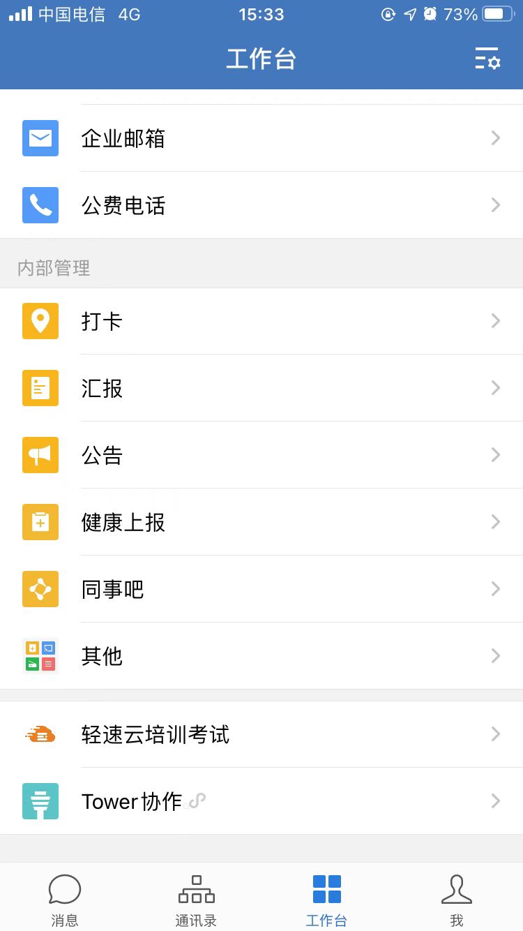 在企业微信的 工作台 中可以找到 kaiyun体育官方网站手机网培训考试 ,点击后直接使用kaiyun体育官方网站手机网培训考试平台个人后台,无需注册与登录。