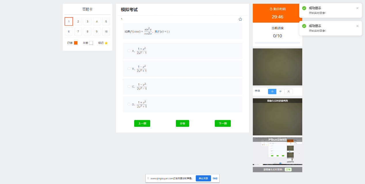 所有的设备正确连接并通过考前检测,再次点击 开始考试 ,即可进入考试页面。