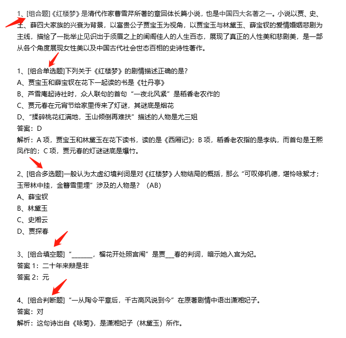 组合题必须标识题型 [组合题] ,否则将被识别为普通题目。
