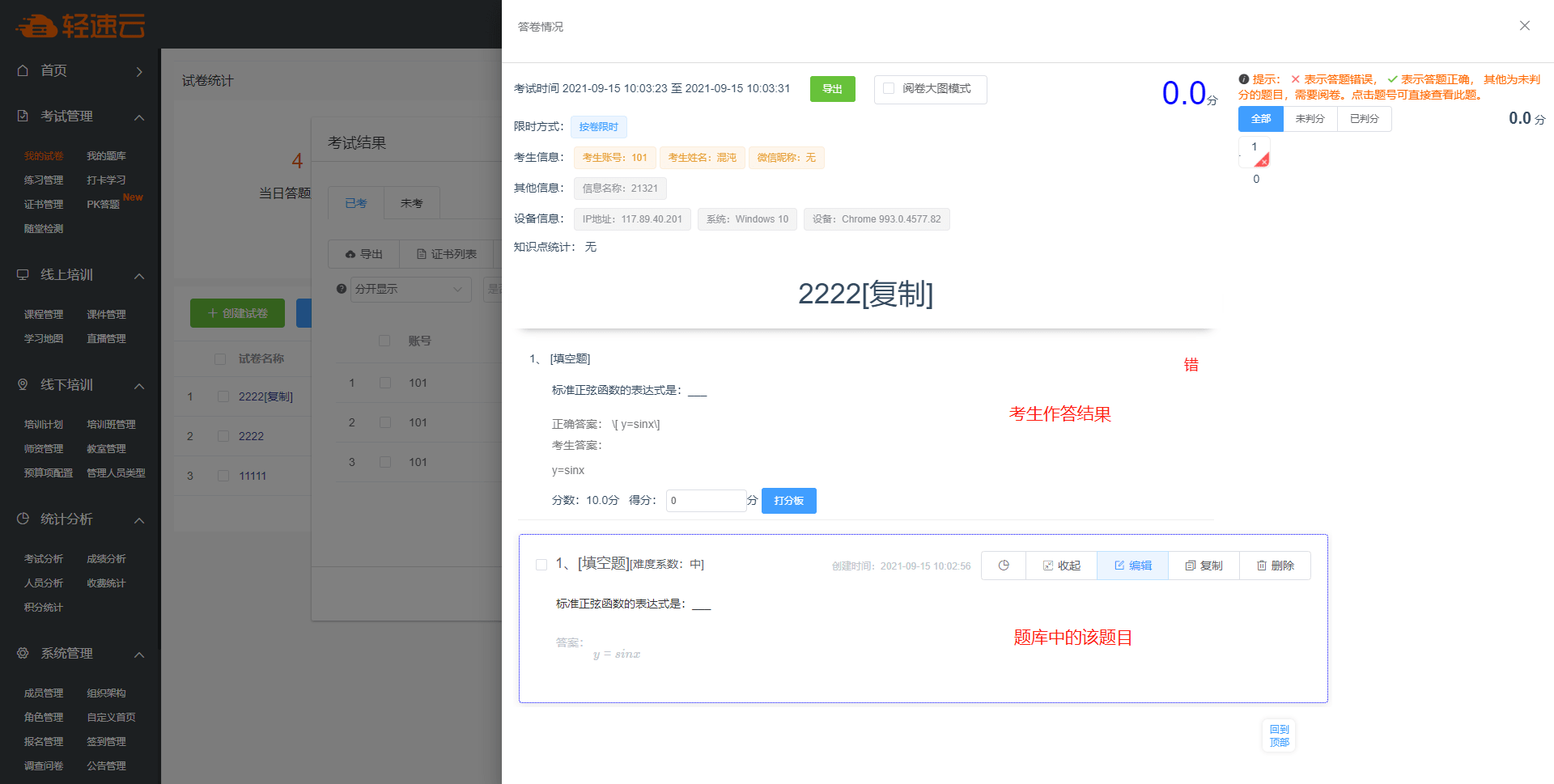 3、考生作答结果与填空题的答案相同,却被系统判为回答错误。