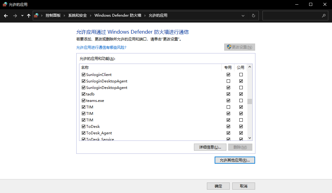 c、windows防火墙禁止客户端访问网络。可通过 控制面板 - 系统和安全 - Windows Defender 防火墙 - 允许的应用 - 更改设置 - 允许其他应用 来手动设置允许客户端通过防火墙。