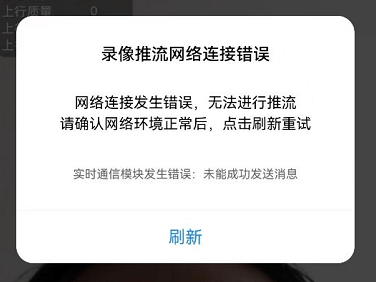 问题:手机端录像推流网络连接错误。