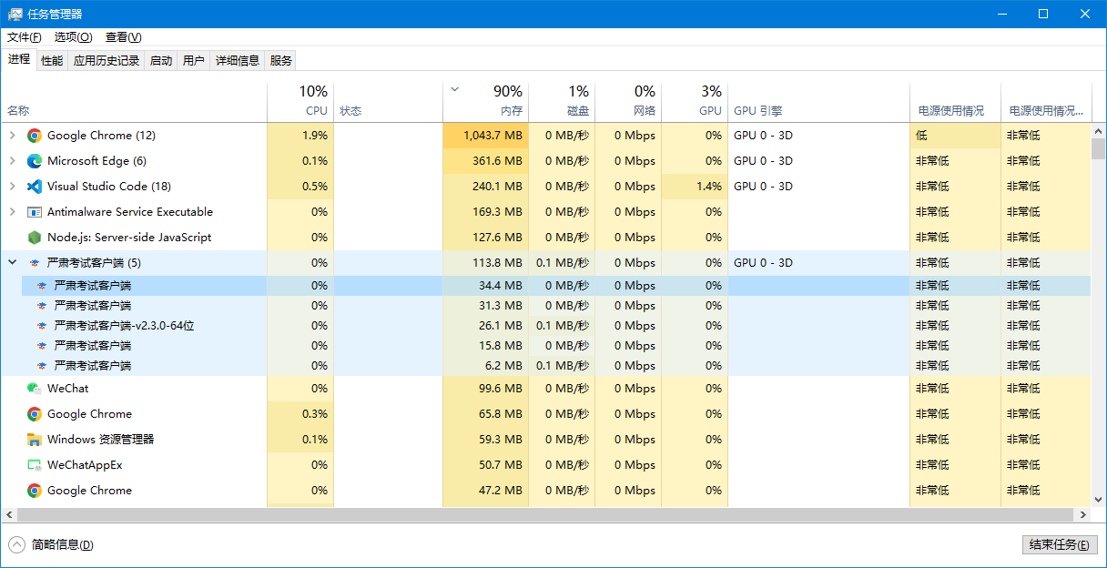 答:打开windows任务管理器,查看是否有冗余的 严肃考试客户端 进程,将其手动结束,然后卸载客户端重新安装。