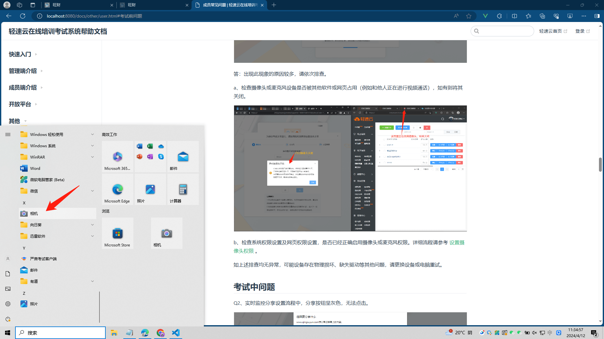 b、检查系统权限设置及网页权限设置,是否已经正确启用摄像头权限。