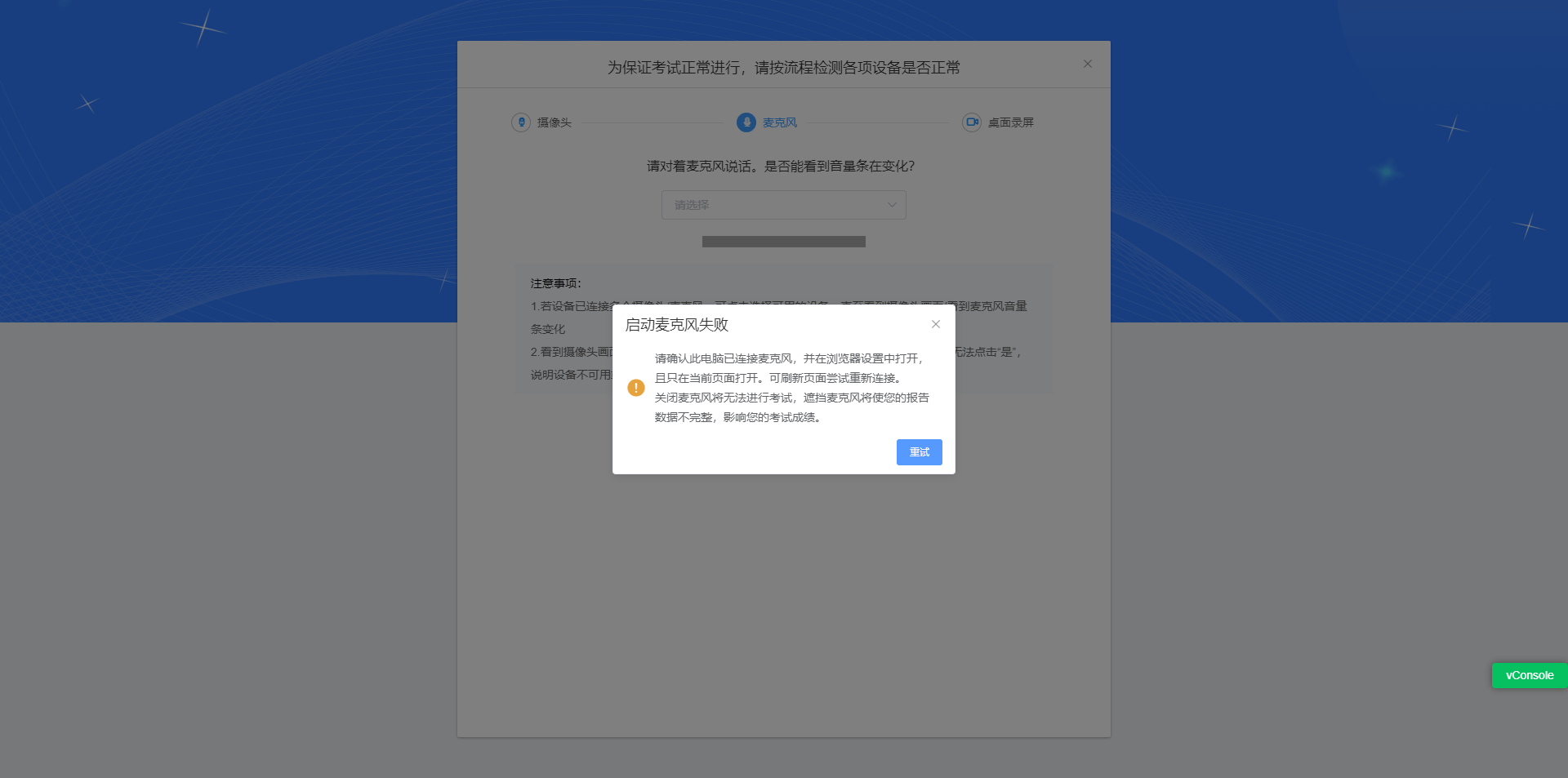 问题:启动麦克风失败。
